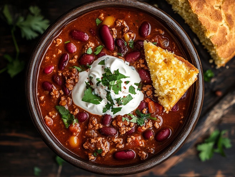 Krydret og mettende chili con carne med kidneybønner, hermetiske tomater og ris. En varmende gryte som smaker enda bedre neste dag. Perfekt til store selskaper eller meal prep. Juster chiliinnholdet etter smak — fra mild familiefavoritt til skikkelig het variant.
