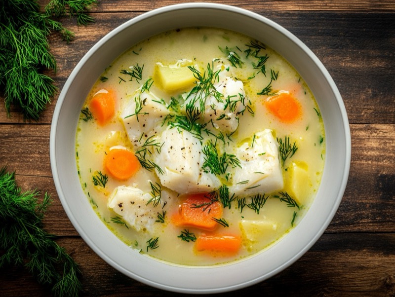 Smak til med salt og hvit pepper. Server med frisk dill og grovt brød.