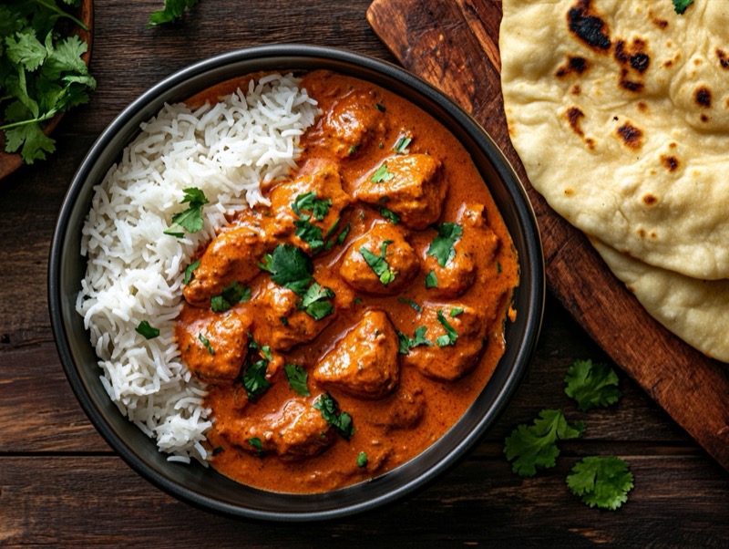 En kremet og aromatisk kylling tikka masala med yoghurtmarinert kylling i en rik tomatsaus med indiske krydder. Serveres med duftende basmatiris og naanbrød. Denne britisk-indiske klassikeren er enkel å lage hjemme og smaker like godt som fra restauranten.