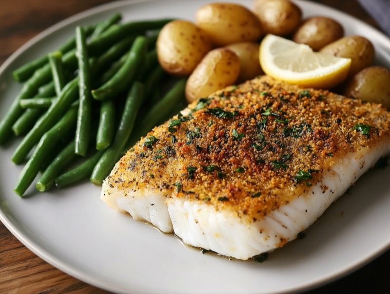 Saftig torskefilet bakt i ovn med smørkokte poteter, gulrøtter og brokkoli. En klassisk norsk hverdagsmiddag som krever minimalt med arbeid — alt legges på ett brett og stekes ferdig. Torsken holdes saftig med litt smør og sitron på toppen, og grønnsakene ristes gyldne i ovnen.